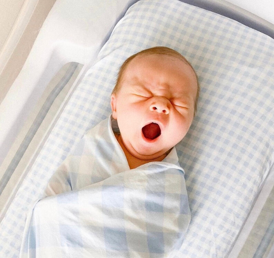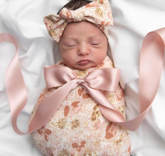 Swaddling a newborn helps them feel secure & calm as it mimics the tight space in the womb.